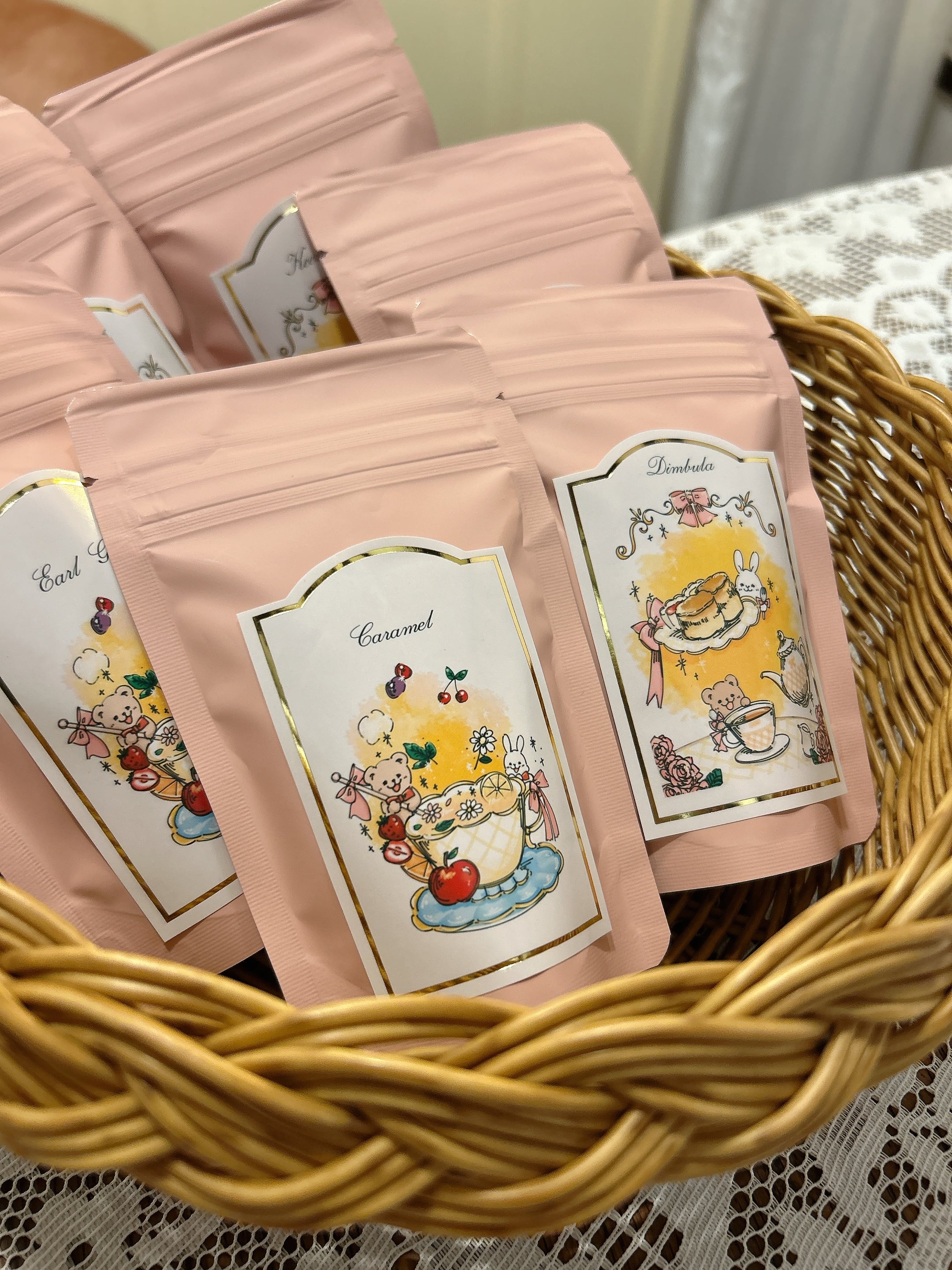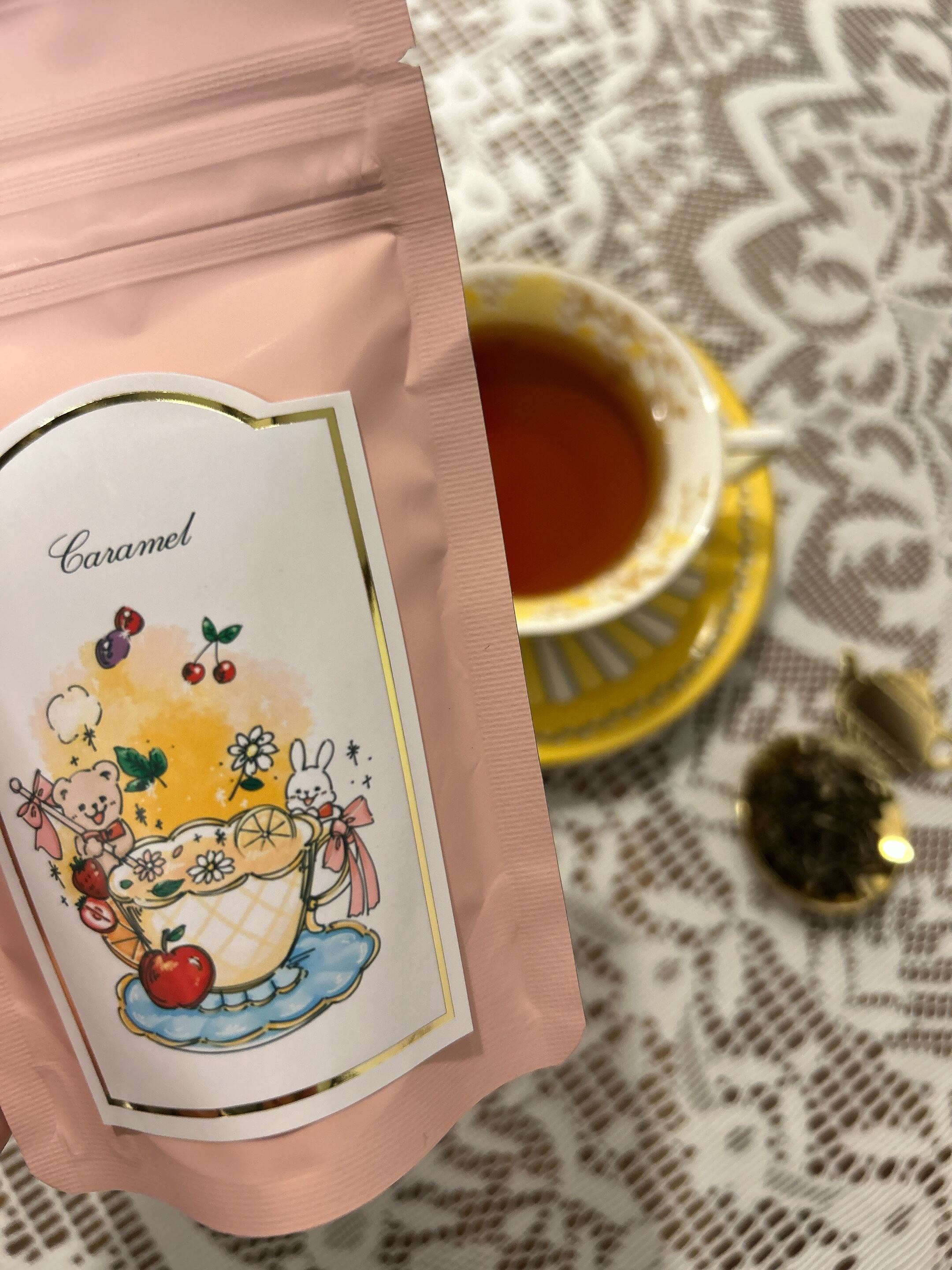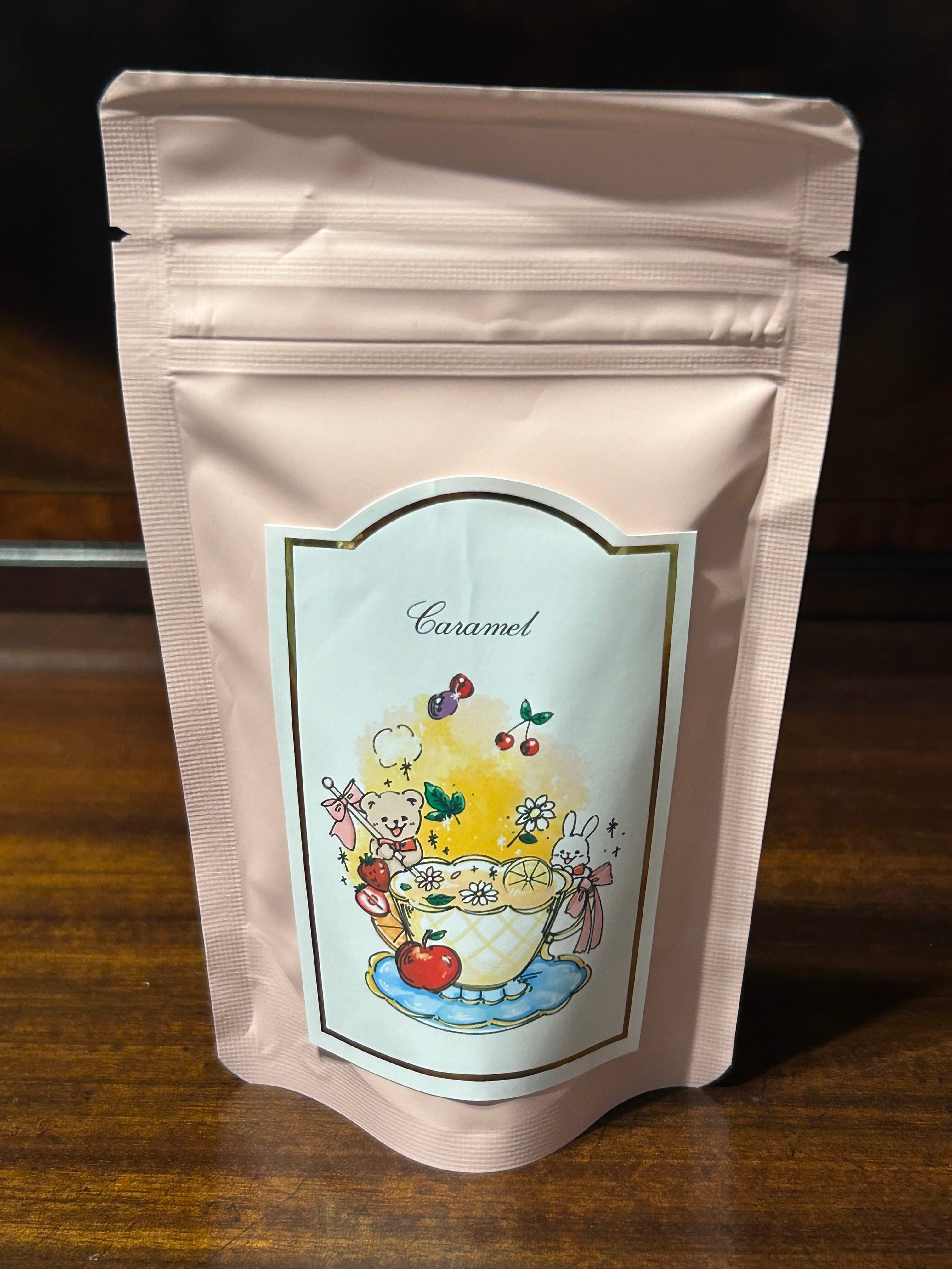 キャラメル茶葉をアルミパックに入れています。